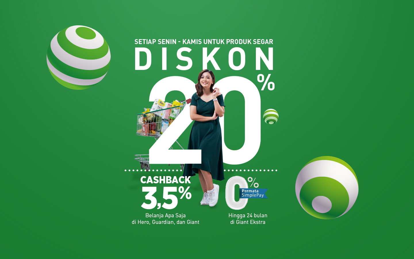 - Diskon 20% produk segar hari senin - kamis di HERO & Giant