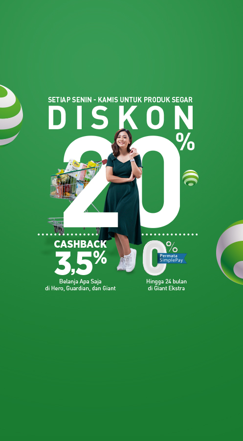 - Cashback 3,5% belanja apa saja di HERO, Giant dan Guardian